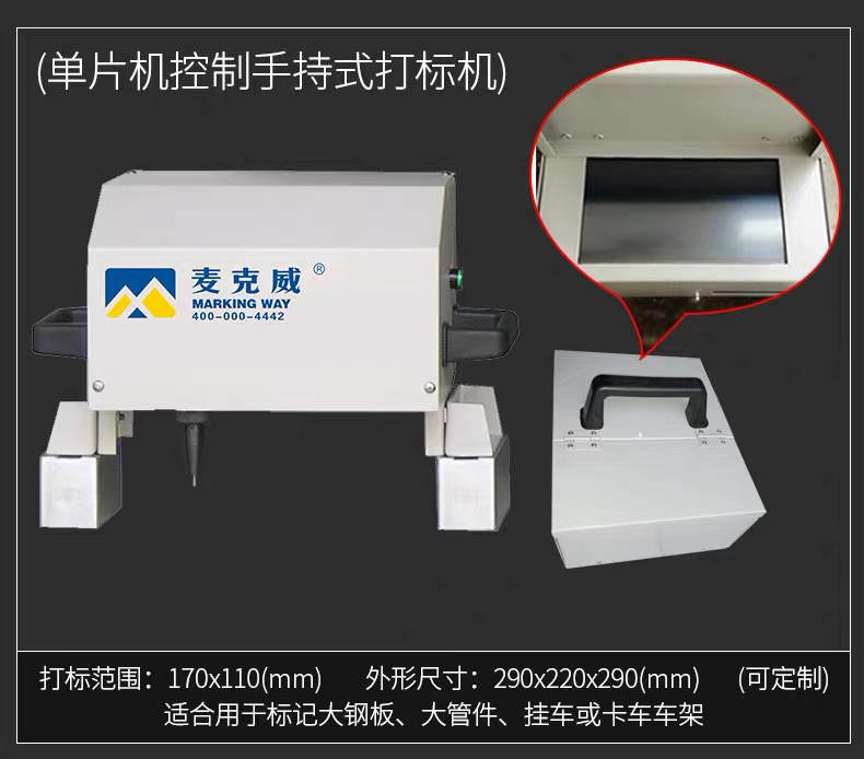 钢针在压缩空气作用下高频振动,冲击工件。同时计算机控制二维运动机构带动钢针按预设的轨迹运动。从而在工件上形成字符和图形。